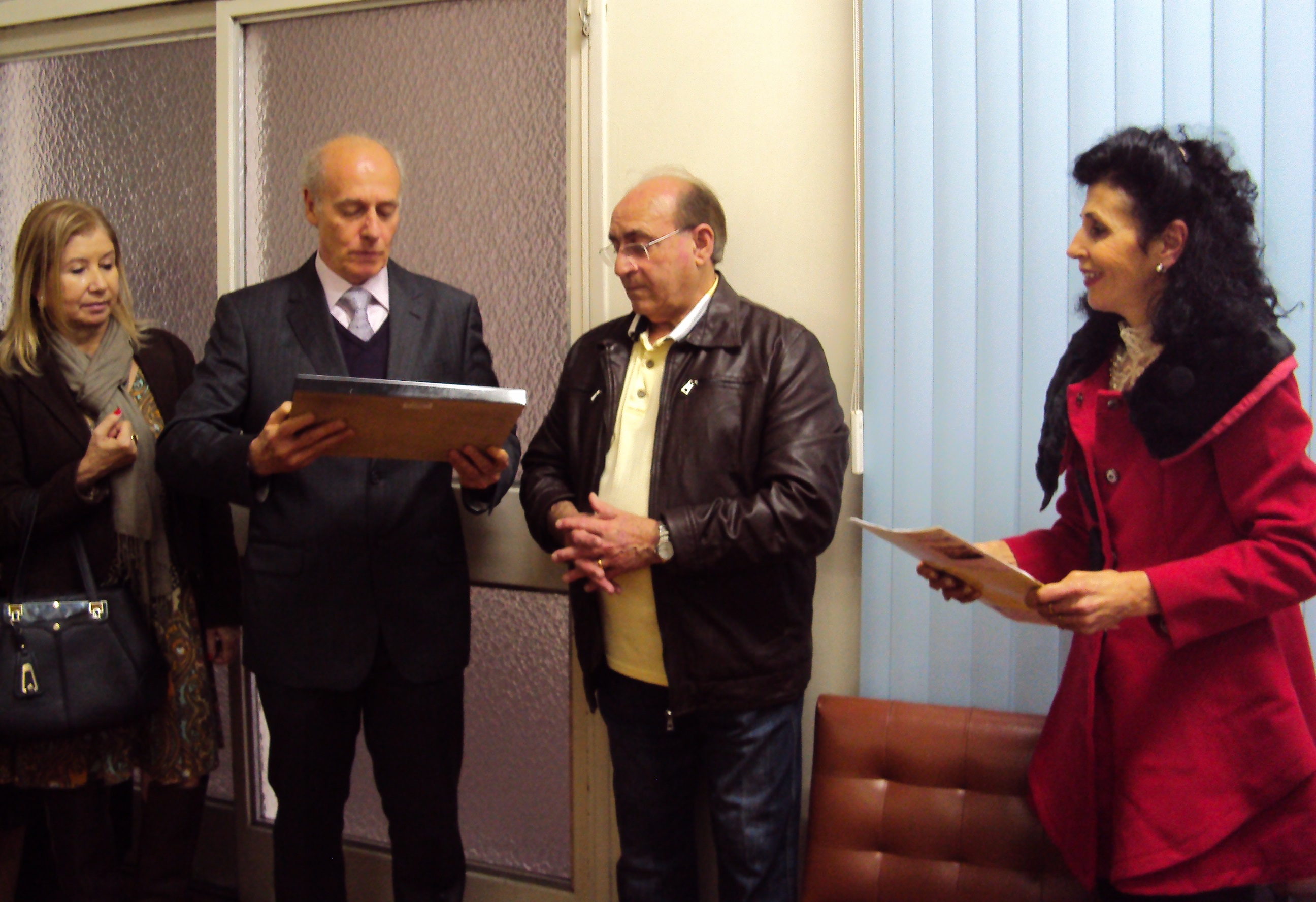Emocionou a todos a homenagem prestada a seguir ao mais antigo colaborador da casa, o Professor Delvino Inério Valandro, “cuja história, disse o presidente, se confunde com a própria trajetória da Entidade”. Há 30 anos no Núcleo, Prof. Delvino teve suas qualidades ressaltadas pela presidência e, entre aplausos dos presentes, recebeu da presidência uma merecida placa de Mérito de aço inoxidável, pronta para ser colocada nas dependências do Núcleo. O texto foi lido aos presentes pela vice-presidente, professora Vera Lúcia Lopes Machado, que concluía com o seguinte:“Que as novas gerações tenham nesse profissional sua inspiração e exemplo.”